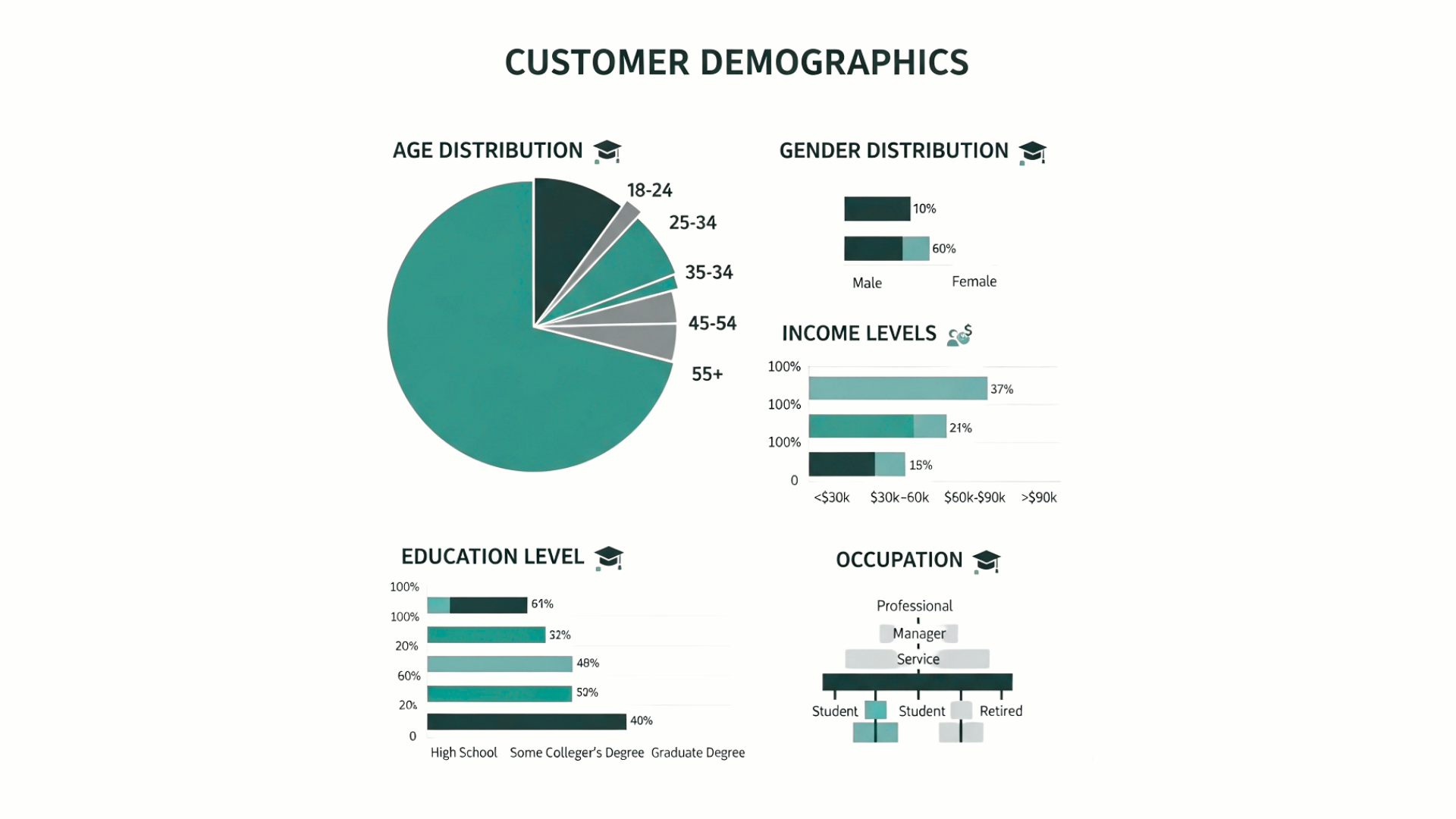 Demographics include basic information like age, gender, income level, education, and occupation. This information helps businesses understand who their customers are and tailor products or services accordingly. For example, a luxury brand may focus on high-income individuals, while a gaming company targets younger adults. According to Statista, over 60% of marketers say demographic information is the most important data for segmenting their audience.